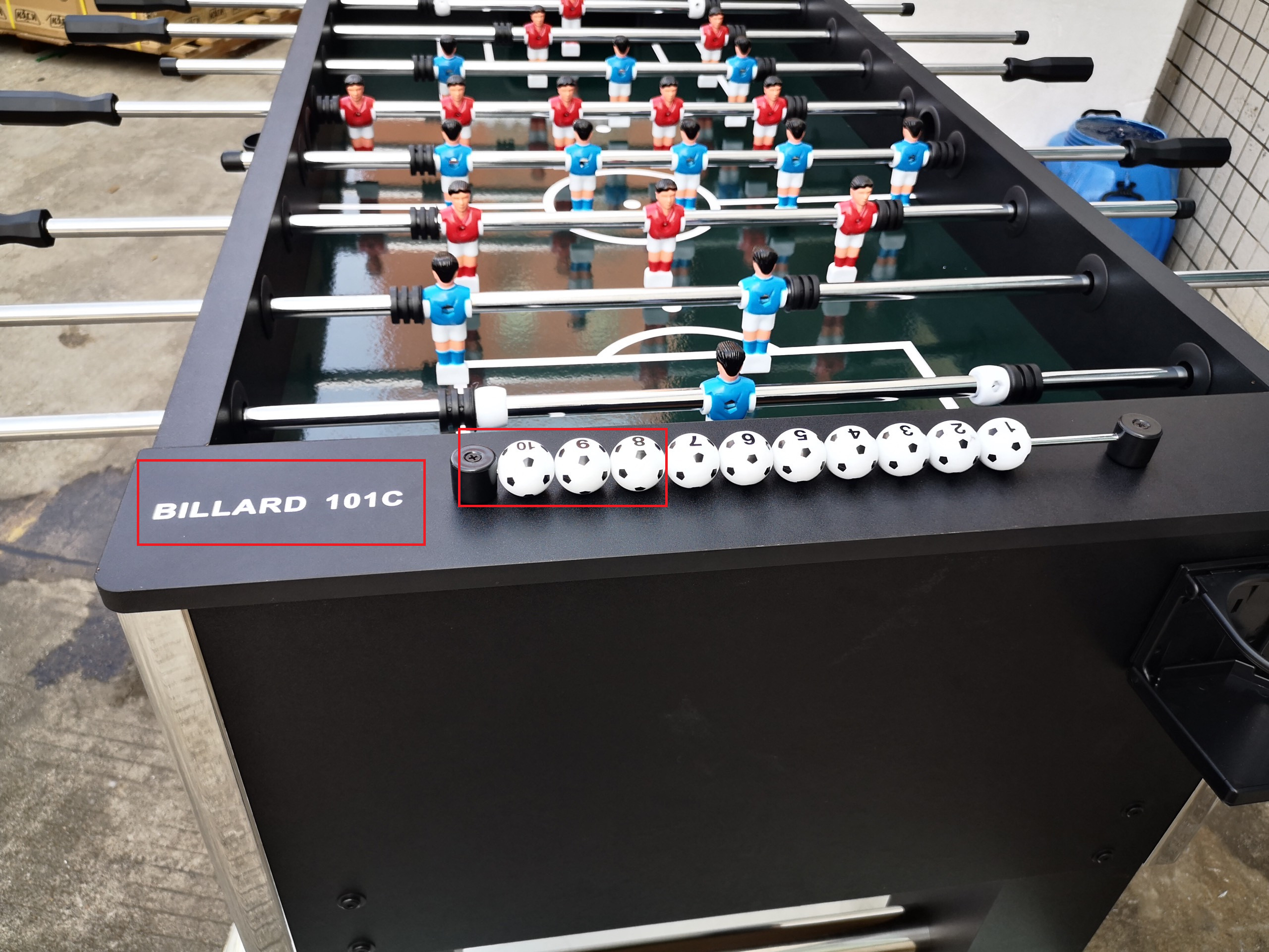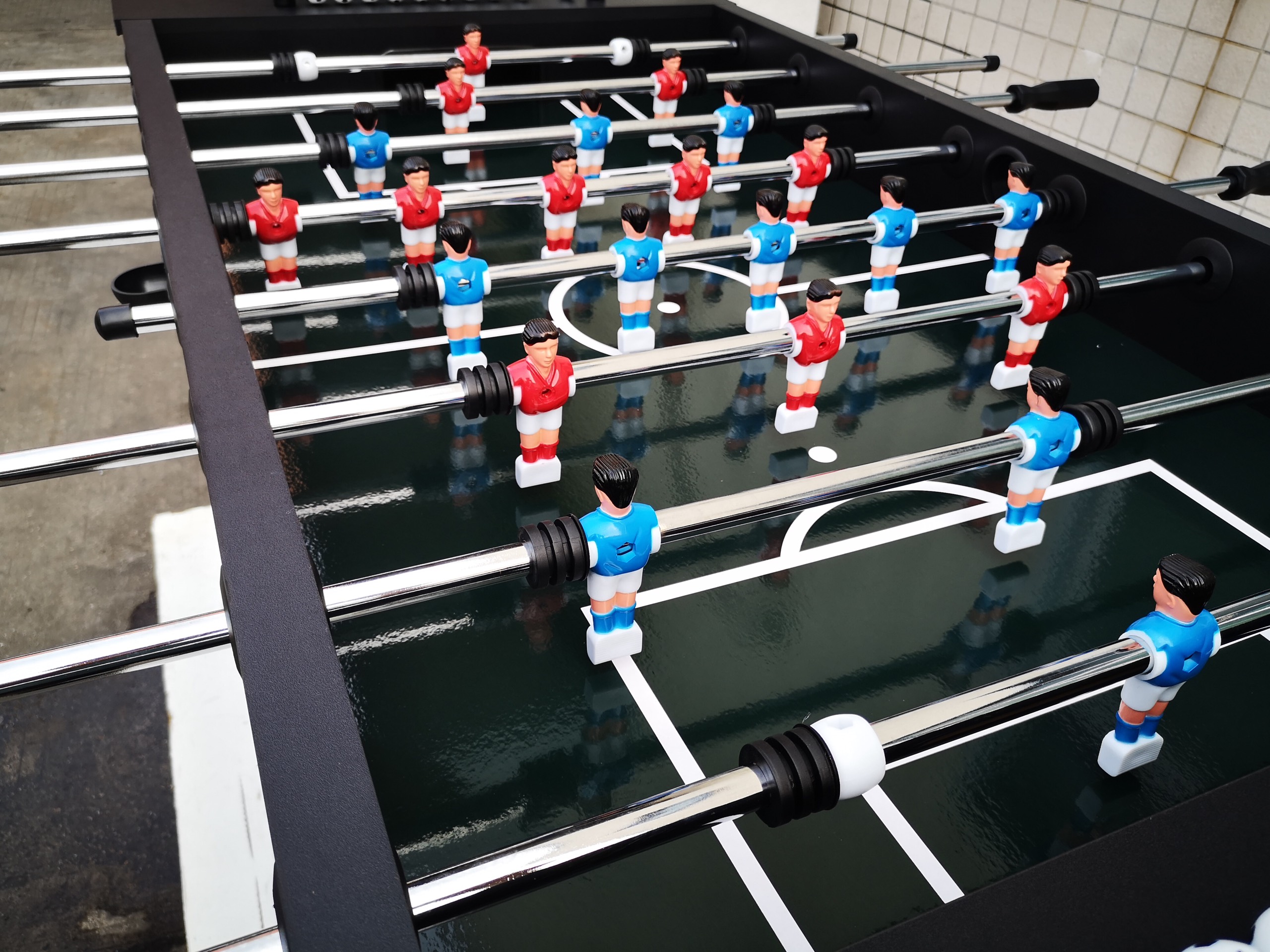 - Sản phẩm được thiết kế với 11 cầu thủ ở mỗi bên, phân biệt rõ ràng quân chơi với hai màu xanh nước biển và đỏ. Được chia thành 8 hàng xếp xem kẽ nhau. Mỗi bên có 1 thủ môn.
