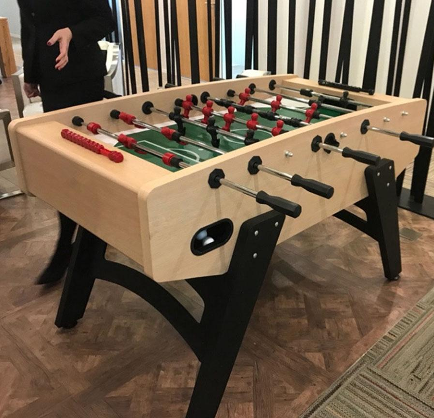 Chân bàn vô cùng chắc chắn hình vuông với thiết kế rỗng, dưới đáy chân bàn được bọc Crom. Các cầu thủ được làm từ nhựa cao cấp chống va đập mạnh, bể vỡ khi sử dụng. Hai bên bàn có phần điểm số trượt giúp người chơi dễ dàng tính kết quả, tỉ số.