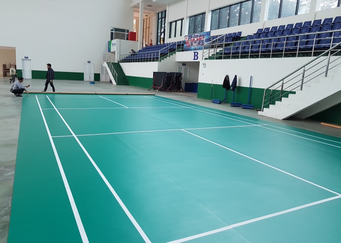Sân cầu lông trong nhà với mặt sân làm bằng thảm PVC