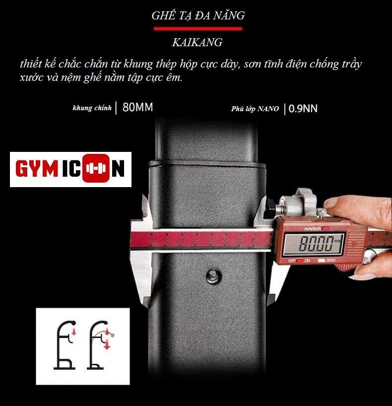 - Ghế tập tạ đa năng T09 được thiết kế với khung sắt hộp to và dày chính vì vậy ghế tạ không chị rung lắc khi tập luyện