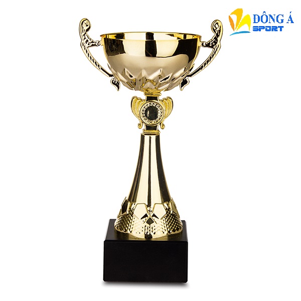 - Thân cúp làm từ kim loại mạ vàng, cúp có 2 quai cúp hình người đang cố gắng leo lên đỉnh vinh quang , đế cúp làm từ đá tự nhiên màu đen chắc chắn.