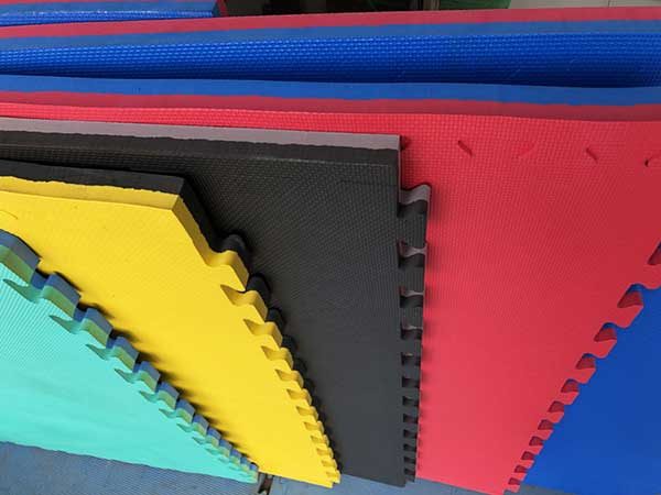 - Đệm có chiều dày 2.5cm, kích thước tấm 1m x 1m, màu sắc đa dạng có thể lựa chọn. Việc ứng dụng có thể sử dụng loại thảm một màu hoặc lọai thảm hai mặt hai màu, có thể sử dụng cả hai mặt, tiện lợi cho việc sử dụng. Việc lắp đặt thảm dể dàng nhờ vào cấu tạo các mấu liên kết quanh tấm thảm, khi lắp đặt ghép các tấm thảm lại với nhau nhờ các mấu liên kết, giữ chặt với nhau.