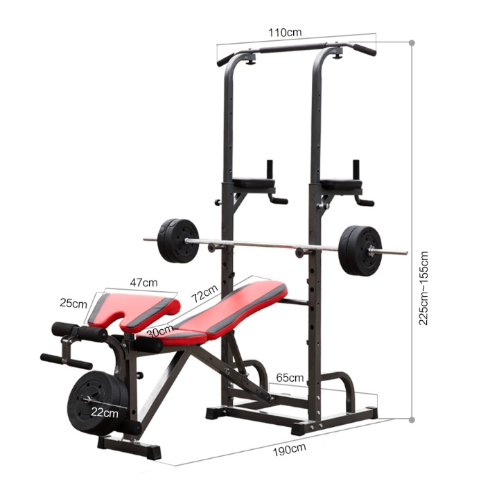 - Kích thước lắp đặt: 1700 x 670 x 2300 (dài x rộng x cao). Giàn tập tạ sử dụng đòn tạ 1,5 m để tập các bài tập đẩy tạ.