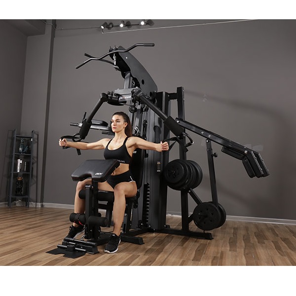 - Giàn tập tạ đa năng 908S được thiết kế rất chắc chắn, tích hợp hơn 52 bài tập thể hình hiệu quả cho Gymer tại nhà hoặc phòng Gym tại các cơ quan và hỗ trợ 3 người cùng tập luyện một thời điểm