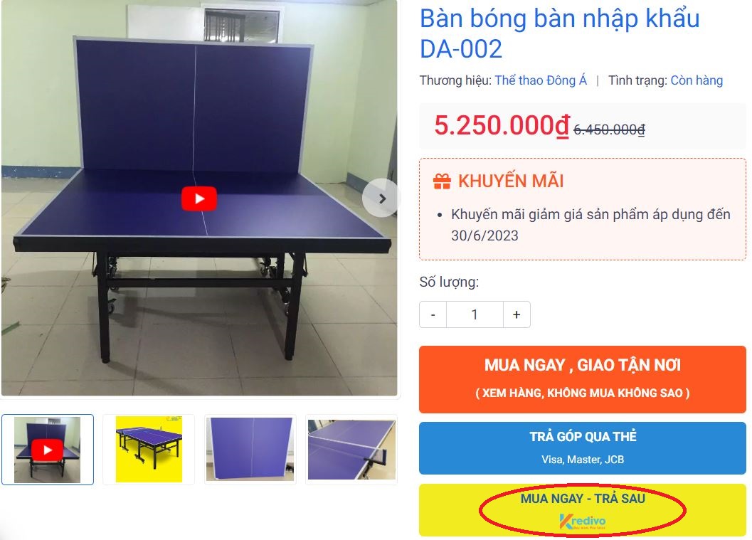 Mới đây nhất, phương thức mua trước trả sau bằng Kredivo đã chính thức có mặt tại Thể Thao Đông Á giúp khách hàng có cơ hội được mua hàng trước trả tiền sau thật dễ dàng và nhanh chóng, tối ưu được chi tiêu khi mua sắm online.