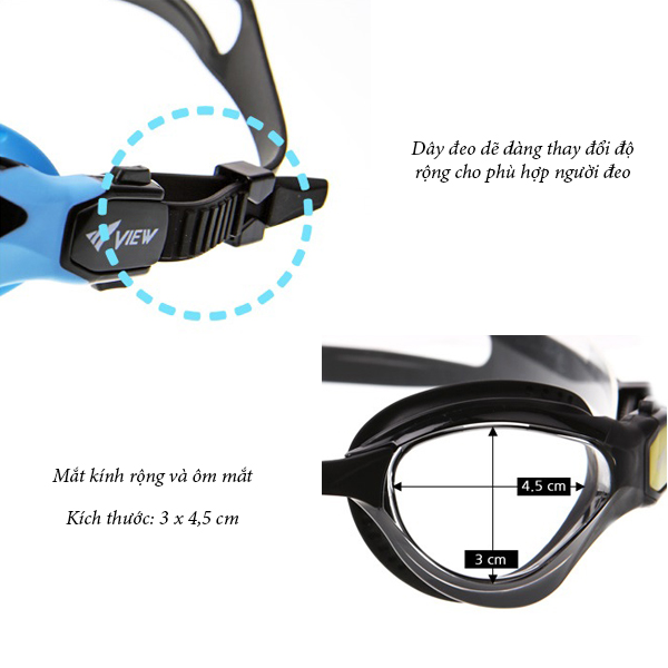 - Dây đeo và vành kính bơi làm từ silicon mềm, thân thiện với da, cho độ bám mút cao, chống tràn nước hiệu quả.