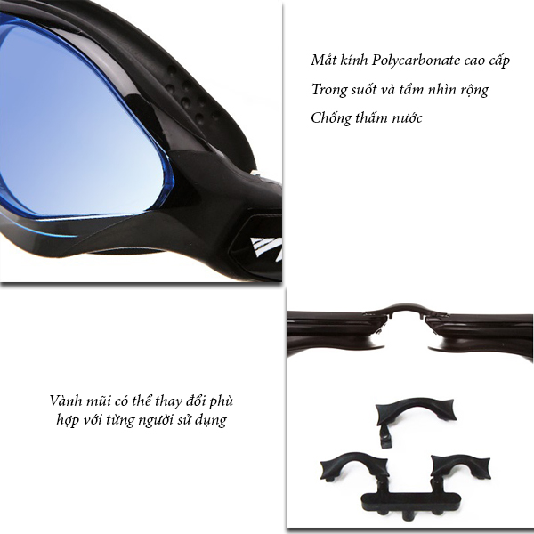 - Nấc mũi làm từ Elastomer có độ đàn hồi tốt, 3 size (S,M,L) thay đổi khoảng cách giữa 2 mắt kính dễ dàng, phù hợp cho cả nam và nữ.