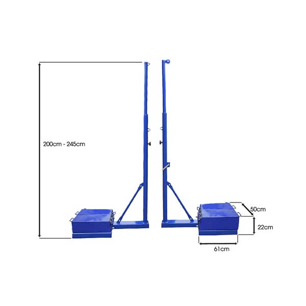 - Trụ bóng chuyền có chiều cao thay đổi từ 2m đến 2.45 m tiêu chuẩn của môn bóng chuyền.