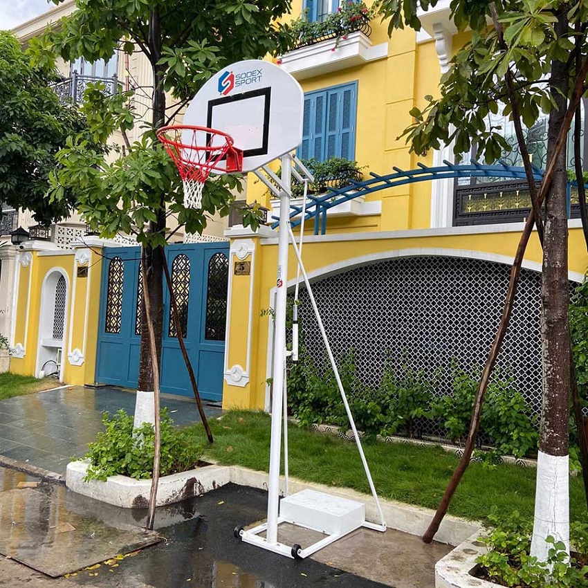 - Vành rổ tiêu chuẩn rộng 450mm và lưới PP đạt tiêu chuẩn thi đấu
