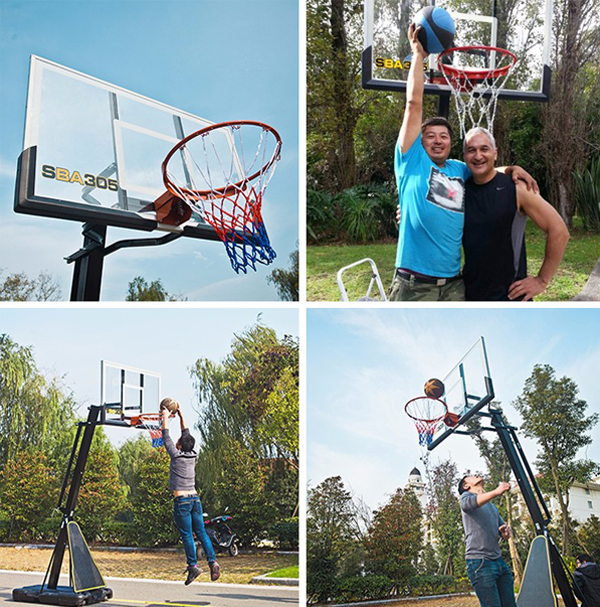 - Chiều cao trụ bóng rổ điều chỉnh từ 2.3m đến 3.05m, phù hợp với mọi đối tượng sử dụng.