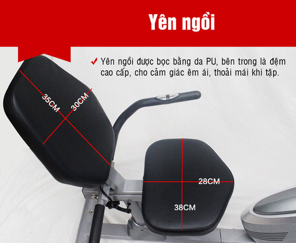 - Ghế ngồi và phần tựa lưng bọc da PU êm ái, bên trong là đệm cao cấp, phù hợp với người cao tuổi hay người thể trạng yếu và còn tích hợp chức năng điều chỉnh xa – gần để phù hợp với sải chân của từng người.
