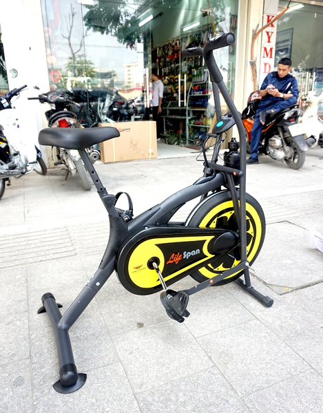 - Xe đạp tập liên hoàn Life Span tích hợp màn hình đồng hồ hiển thị có chức năng thống kê các thông số trong quá trình tập gồm tốc độ, thời gian, vận tốc, quãng đường, calo tiêu hao và nhịp tim.