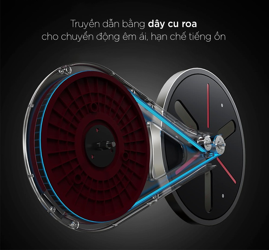 - Bánh đà xe có thiết kế với kích thước lớn. Với chuyển động vận hành bằng dây curoa, xe tập không gây ra tiếng ồn lớn trong suốt quá trình sử dụng. Với mức tiếng ồn không vượt quá 40dB.