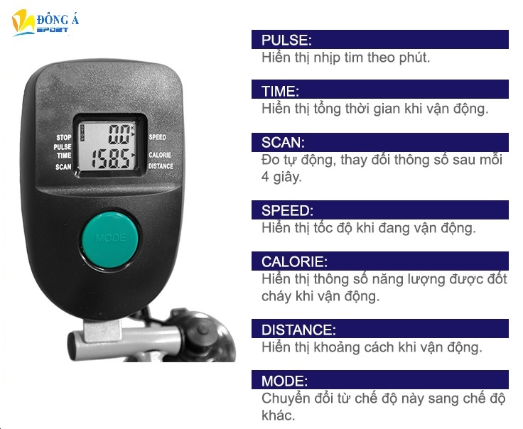 - Tay cầm được bọc mút êm, có cảm biến đo nhịp tim
