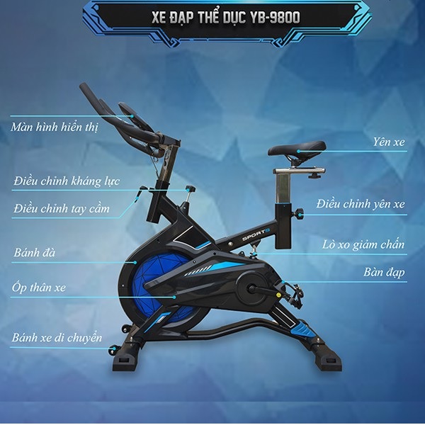 Cấu tạo chi tiết xe đạp tập thể dục YB-9800